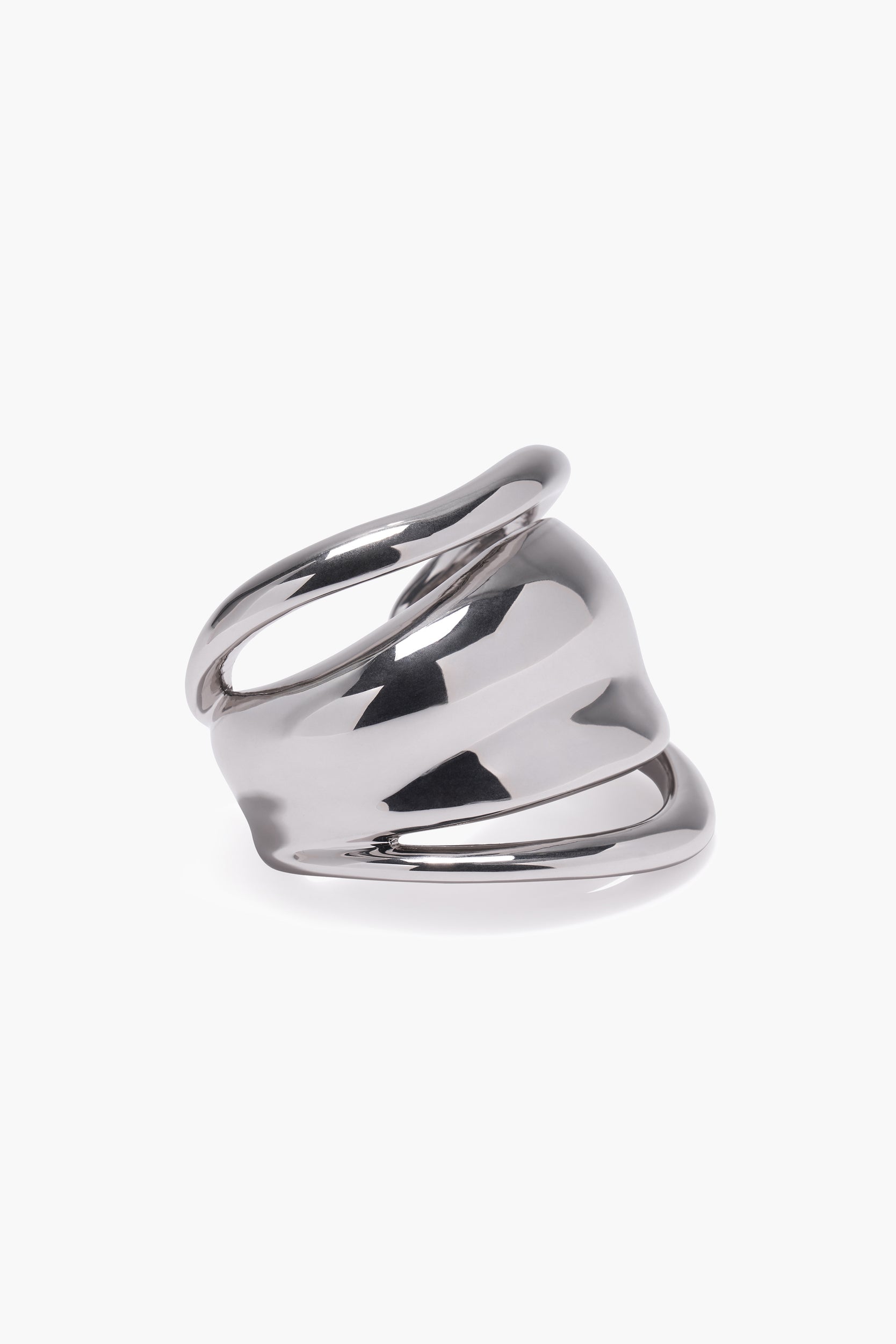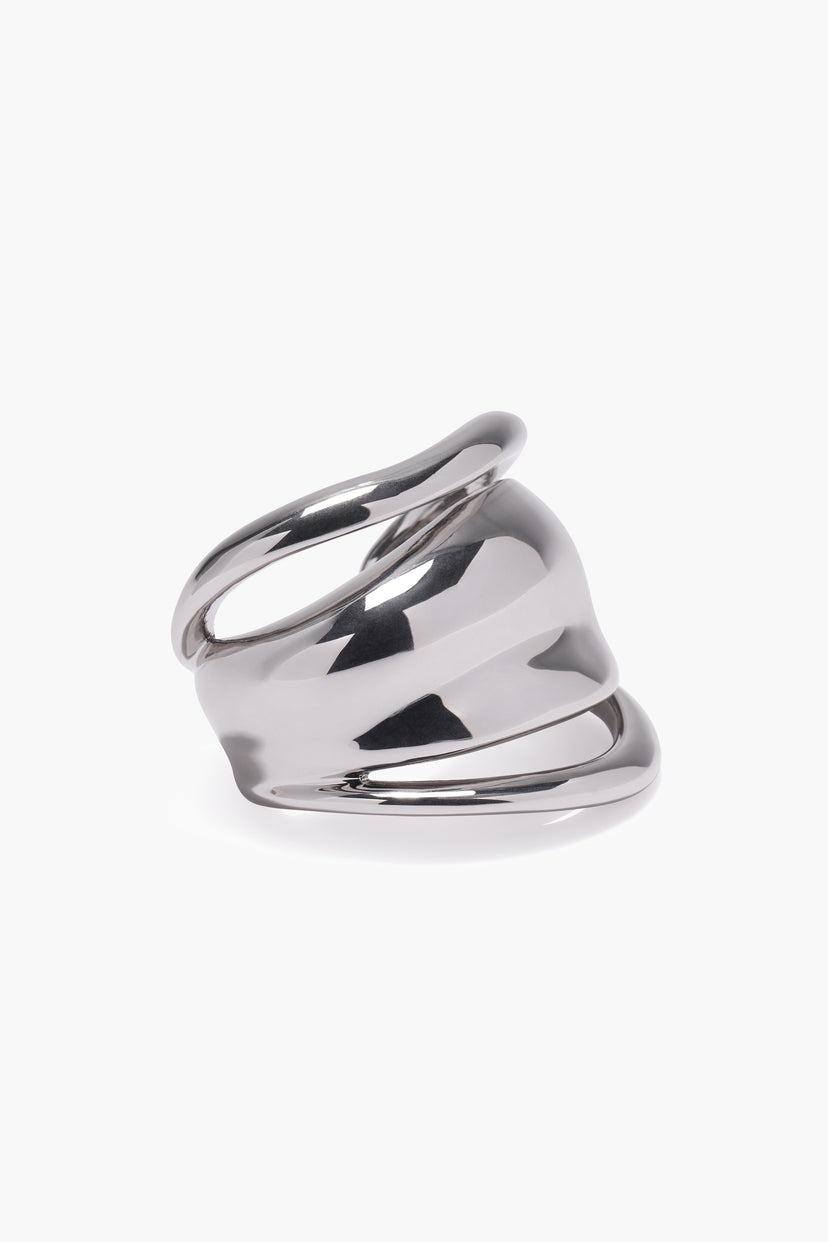 The Olio Cuff embodies Altuzarra’s modern take on statement jewelry. It’s crafted from silver-tone brass with fluid, interlacing curves that wraps elegantly around the wrist.
