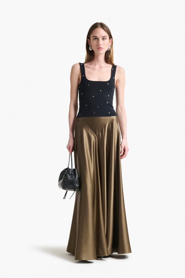 The Baz Top is subtly embellished with shimmering crystals that instantly elevate the classic shape. Knit from viscose, wear with the Dorrie as a twinset.