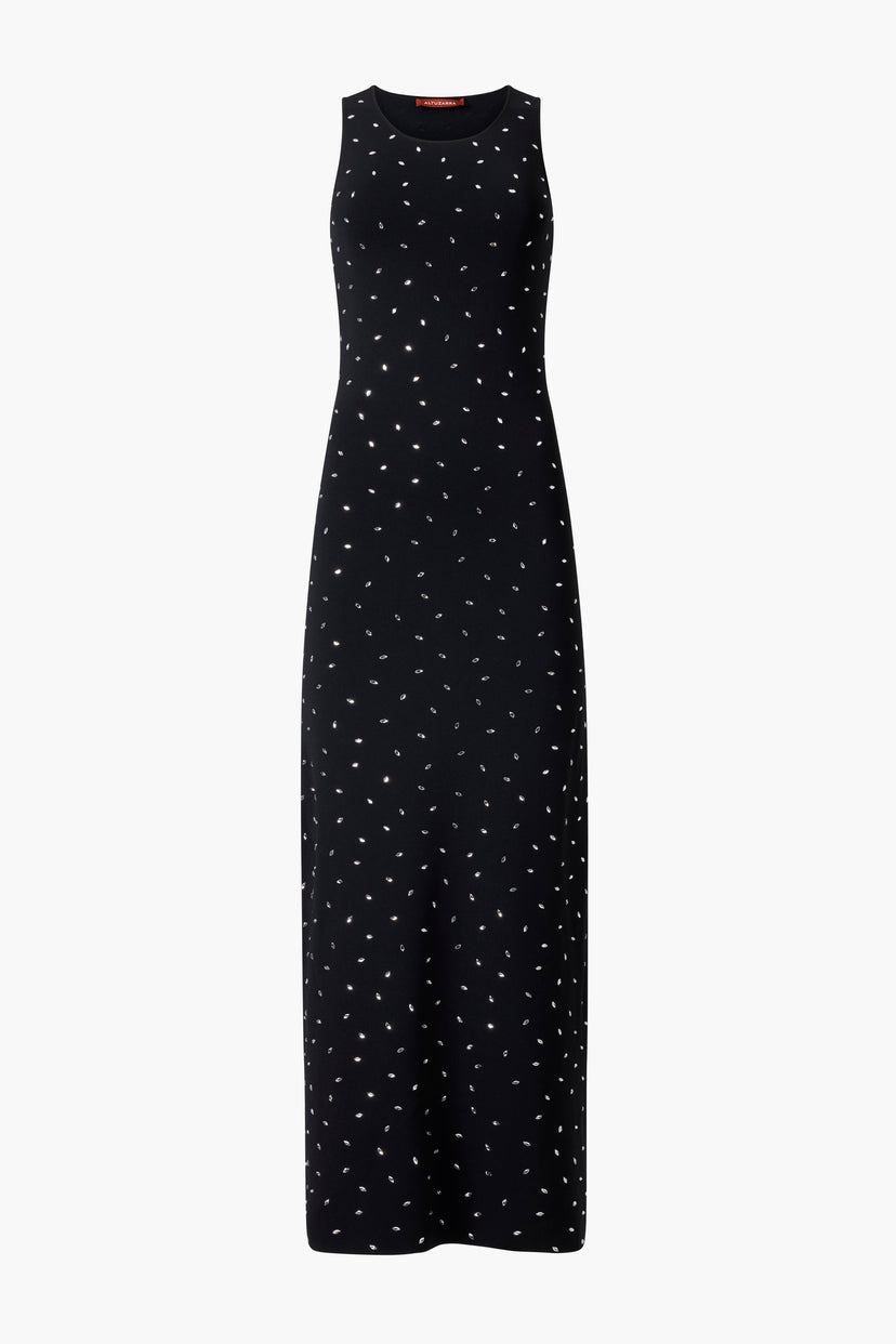 The Geordie Dress is heavily embellished with shimmering crystal beads on a jersey base that beautifully skims your figure as it falls. The classic round neckline and sleeveless silhouette lend it a contemporary look.