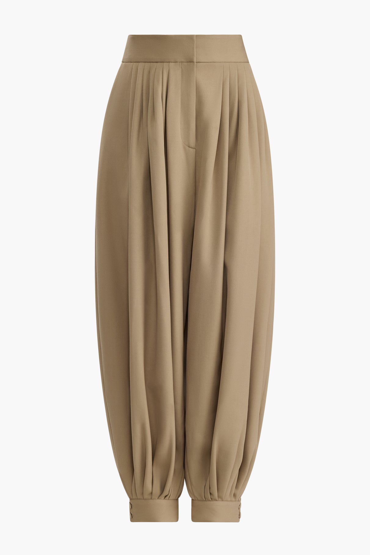 The Chapman pants are cut in Italy from wool. Designed with a high waist and a voluminous, pleated silhouette, they fall into buttoned cuffs for a clean, structured look.