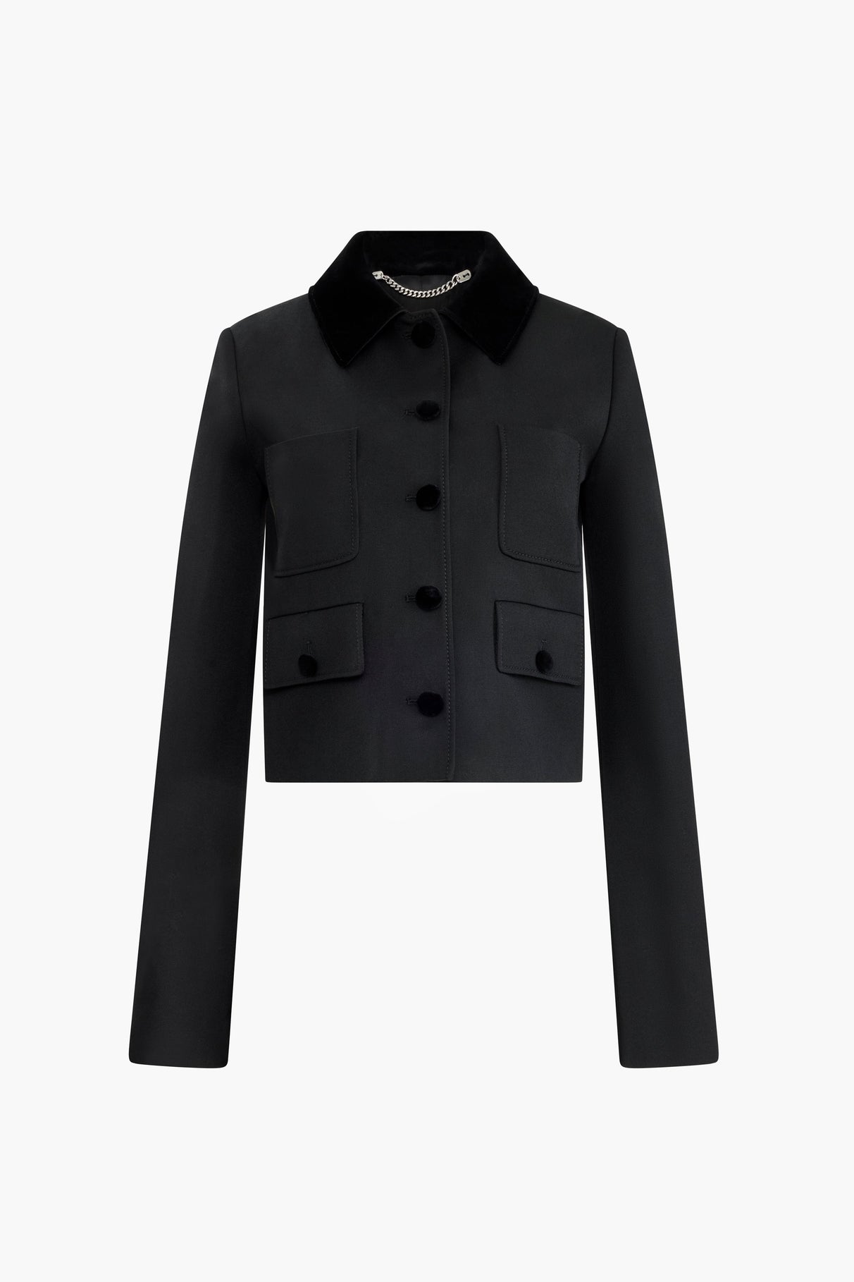 The Astley jacket is precision tailored in Italy from wool. It's designed with a neat point collar, two patch pockets and two flap pockets finished with fabric-covered buttons.