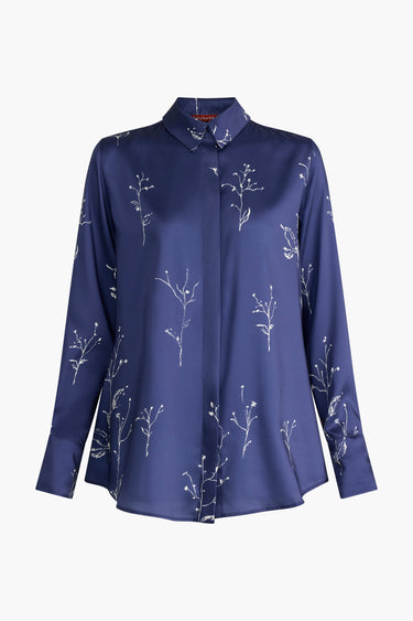 The Chika Top is a signature style in sheer chiffon. Capturing an easy elegance, the relaxed style features a small point collar and a concealed button front closure. Note the botanical print which evokes dried flowers, lovingly preserved or hastily sketched in a notebook