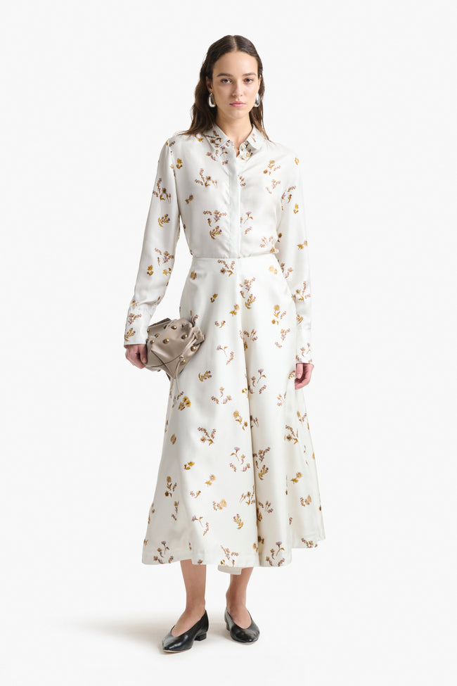 The Chika Top is a signature style in sheer chiffon. Capturing an easy elegance, the relaxed style features a small point collar, and a concealed button front closure.