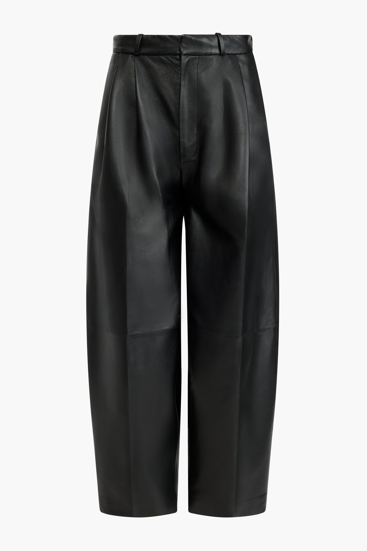 The Dash Pants showcase Altuzarra's focus on tailoring. Made in Italy from soft leather, they feature a cropped, dramatized barrel leg and are finished with neat pleats.