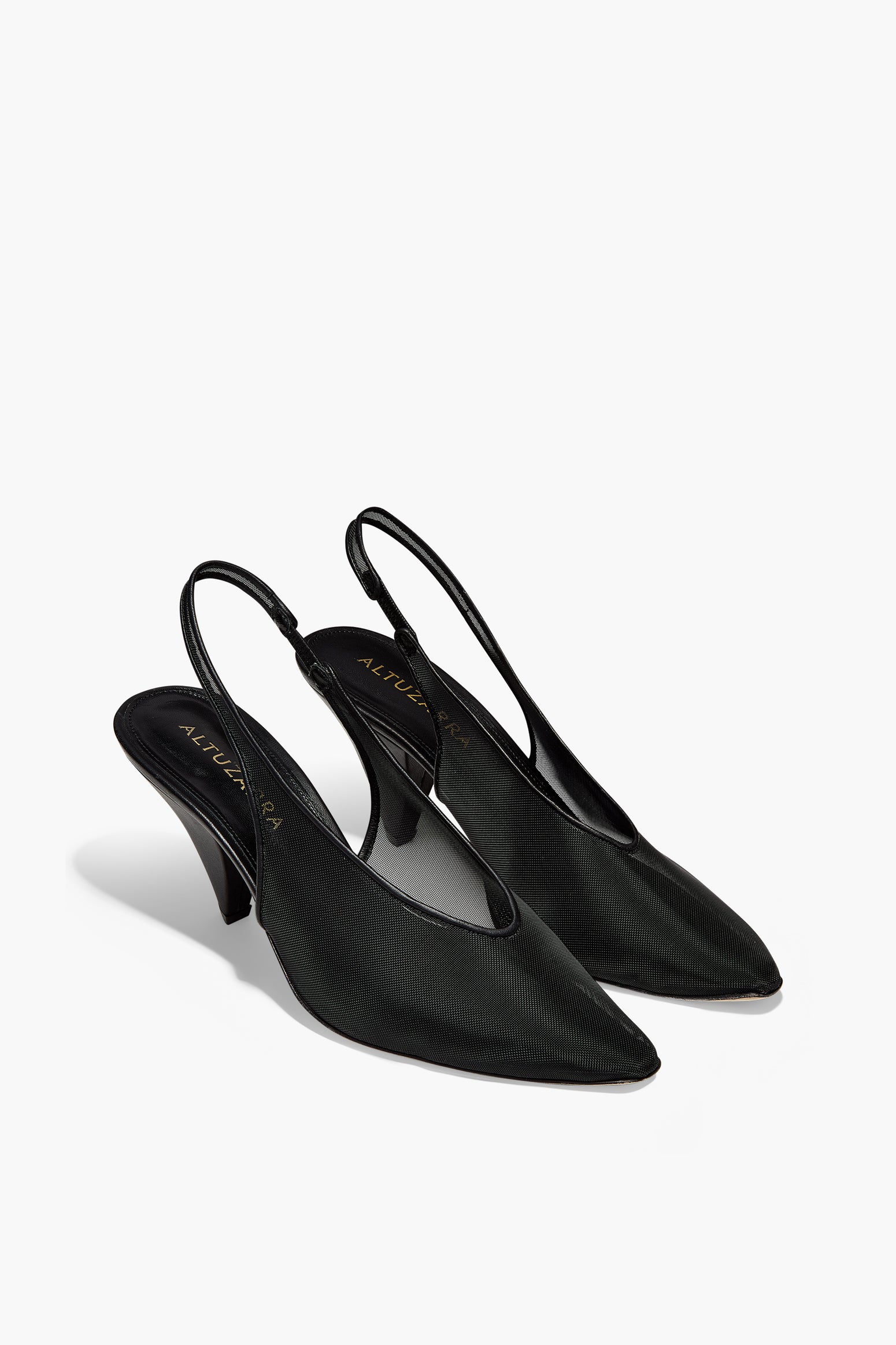 These Slingback Heels were first seen at Altuzarra's Fall show. They're made from black mesh with a pointed toe and a cone heel. Take cues from the runway and style them with an oversized coat.