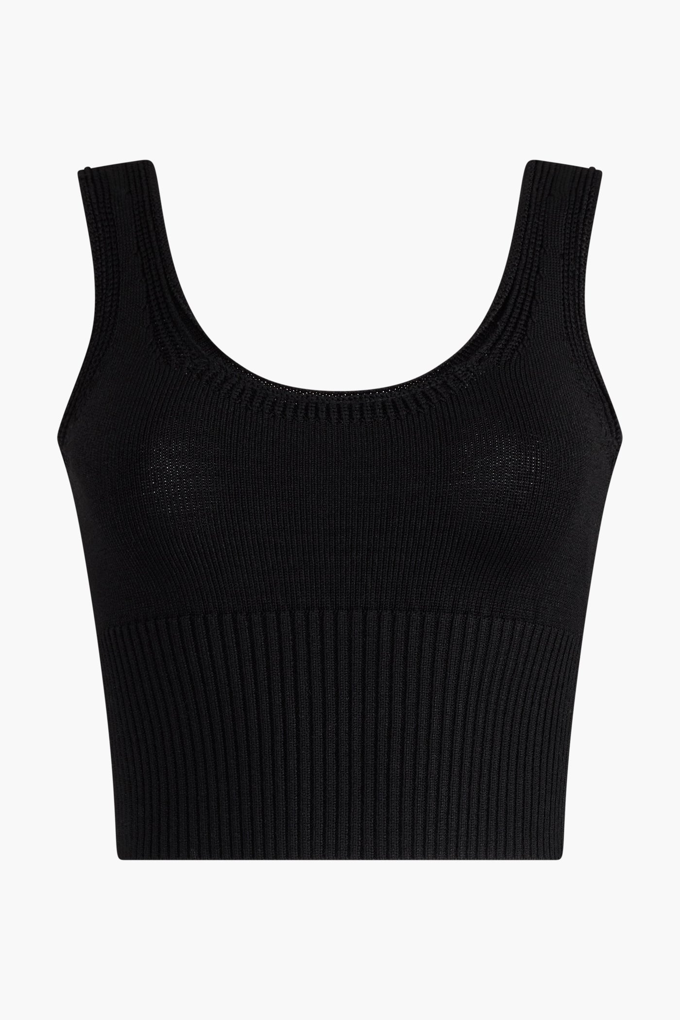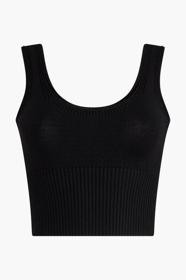 The Lil top is a transitional wardrobe staple. The cropped, close-fitting style is knitted with a scoop neck and elongated ribbed hem. Layer it underneath a jacket and jeans.