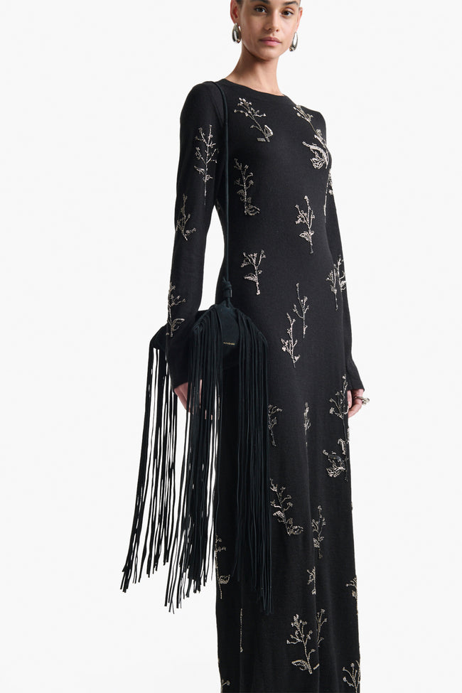 The Mini Origami bag is inspired by the ancient paper folding art. It's shaped in Spain from a single, rectangular piece of leather which folds down completely flat and it's decorated with fringes.